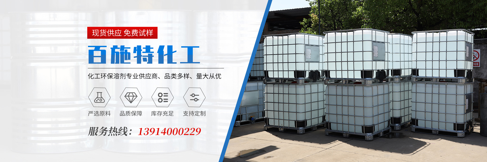原料供應及時充足,包括苯類,酯類,醇類,醚類,酮類,烴類及單體等數十品種進行裝分批發(fā)零售。